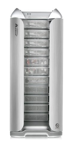 Key Features Regular 5.25" Bays 7 Regular External 3.5" Bays 1 Motherboard I/O Expansion Slots Up to 10 Regular 3.5" Bays 7 Warranty 3 Years Enclosure Color Silver Motherboard Supported up to Form Factor 12" x 9.6" (ATX), 9.6" x 9.6" (Micro ATX) , 12" x 13" (Extend ATX) Chassis Type Super Tower Front Ports E-SATA connector, USB 2.0 x 4, IEEE 1394 Firewire, HD-Audio Weight 37 lbs Dimensions WxDxH 245 x 625 x 600 mm Detail Specifications Features -- Optimized design for both liquid cooling and air cooling system -- Sliding hood with toolbox on top. (Upgradable to LCS.) -- 10 PCI slots design for quad-graphic card configuration -- Tool free design for 5.25" device and PCI slot. -- Sliding motherboard tray -- Independent thermal management for CPU, VGA & HDD. -- Cable management system for better cable routing and internal air flow -- Evolutionary adjustable PSU supporting bridge -- MicroATX, ATX, Extend-ATX supported Specifications Case Type -- Super Tower Side Panel -- Transparent window Sliding Motherboard Tray -- Yes Cable Management -- Yes Sliding hood -- Yes Adjustable PSU bridge -- Yes Material -- Front door Aluminum/ Chassis 1.0mm SECCCustomer Review: Case for the ages with a couple of issues