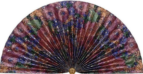 - This fan features a floral pattern, rich with burgundy tones.