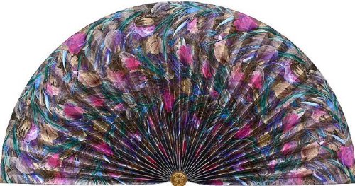 - This fan features a floral pattern, with hot pink and teal flowers.